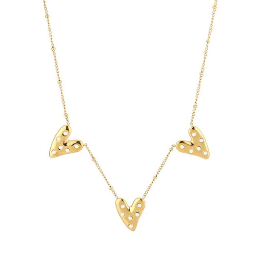 Pearl Heart Triple Ketting | Goud